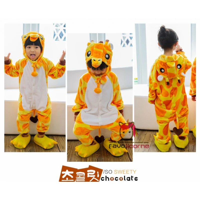 Combinaison Pyjama Enfants Girafe Capuche Garçon & Fille Déguisement Déguisement