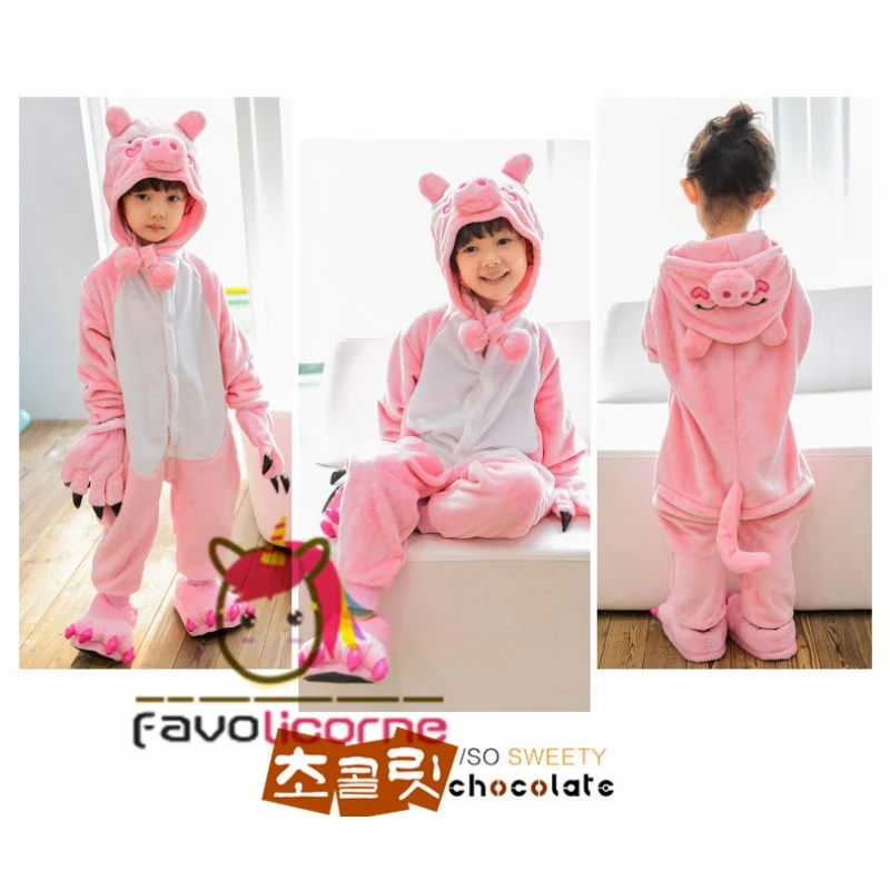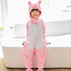 Combinaison Pyjama Enfants Rose Cochon Capuche Garçon & Fille Déguisement Déguisement