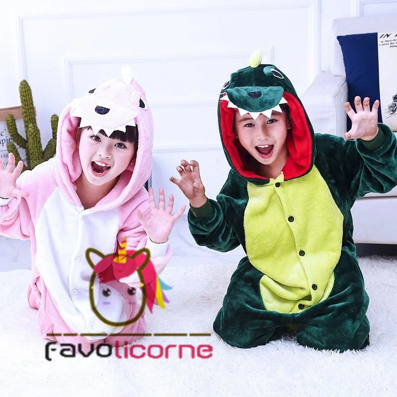 Combinaison Pyjama Enfants Vert And Rose Dinosaure Garçon & Fille Déguisement Déguisement
