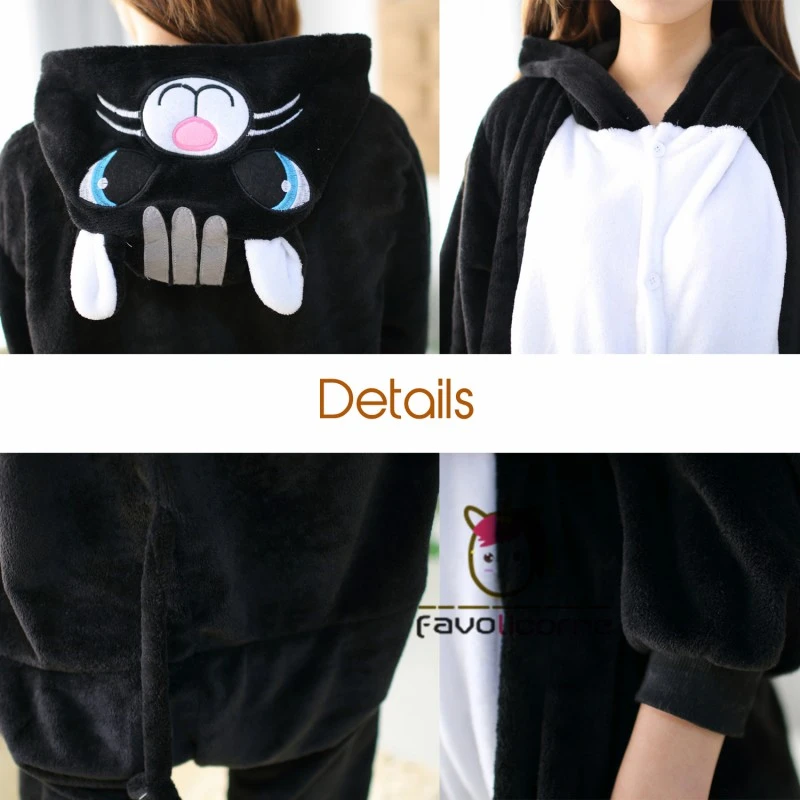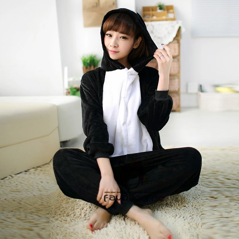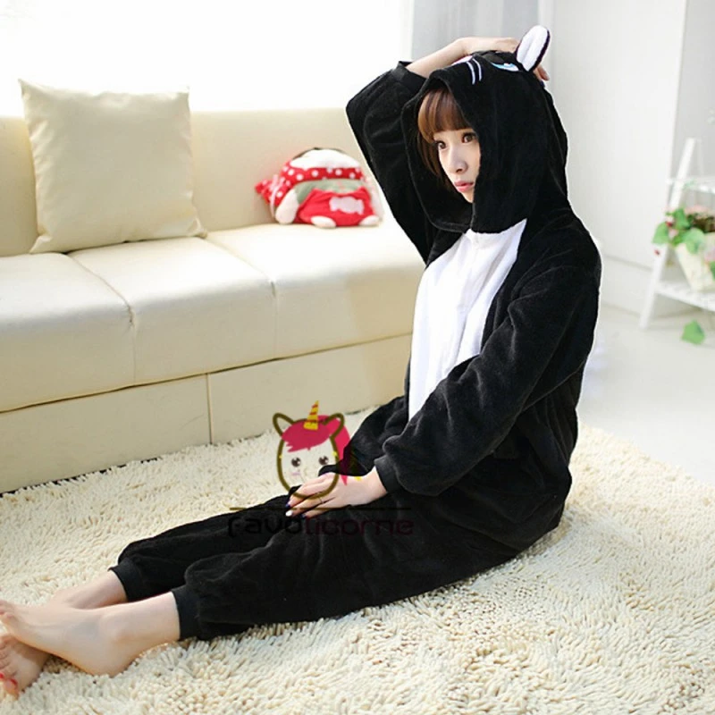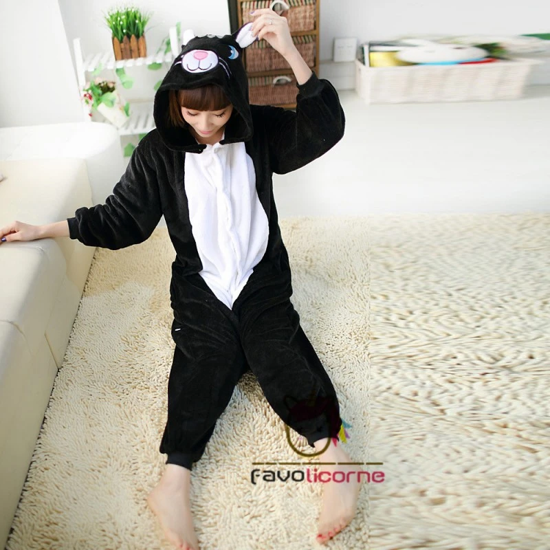 Femme Homme Combinaison Pyjama Chat Noir Déguisement