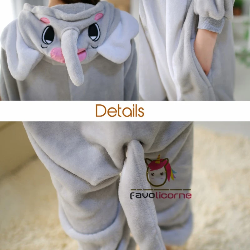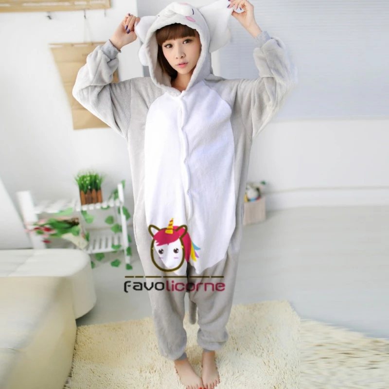 Femme Homme Combinaison Pyjama Éléphant Gris Déguisement