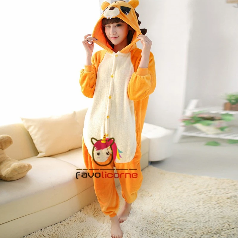 Femme Homme Combinaison Pyjama Lion Adulte Déguisement