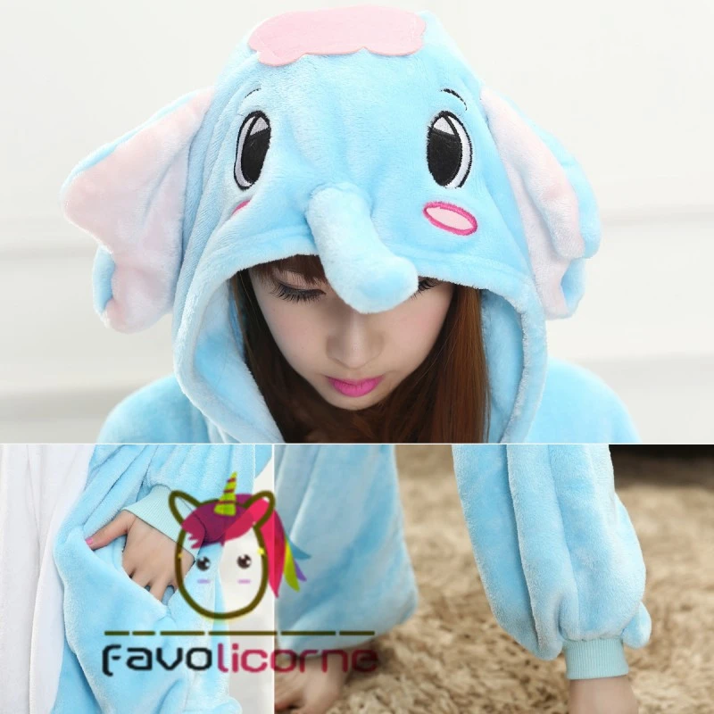 Pyjama Éléphant Bleue Combinaison Femme Homme Déguisement